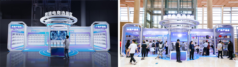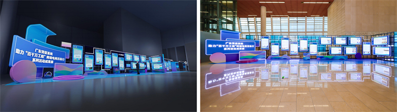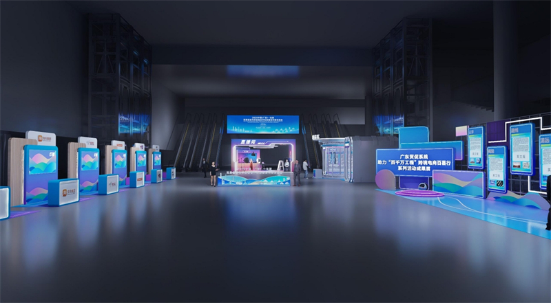 广东促系统助力“百千万工程”跨境电商百县行系列活动成果展、跨境电商平台展示区、直播间。
